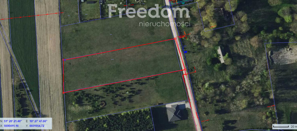 Działka o wymiarach około 155m x 43m , 6606m2, w otoczeniu nowego